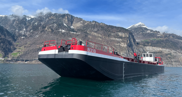 Self-propelled split barges with a capacity of 335 m3 are being used to remove the excavated rock from the Gotthard Tunnel. Firstly, Split barge B308 will be used for 65 weeks after which the newly purchased B310 and B311 will continue the work. Both split barges are also equipped with propulsion and have an extended design, making them ideally suited for this large-scale project.